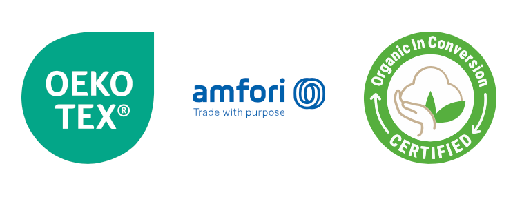 Composition Gris chiné : 90% coton biologique converti, 10% viscose.